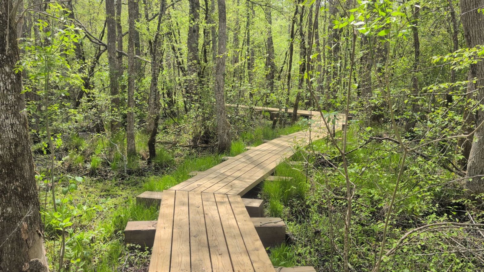 This little half mile loop at Pocomoke River State Park’s Shad Landing will quickly whisk you away into an immersive stroll through the bald cypress swamp. The wooden boardwalk provides easy and comfortable access into an ecosystem that is otherwise difficult to traverse - your feet will stay dry in the damp landscape! Be sure to listen for the calls of Ovenbirds, Prothonotary warblers, Red-bellied woodpeckers, and other migratory songbirds along the way. It’s also quite common to see a Northern water snake basking on a log nearby, but not to worry worry, these snakes are harmless and nonvenomous.